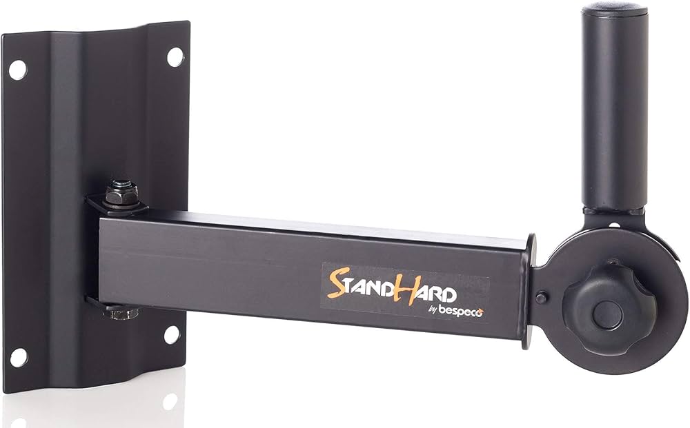 supporto da muro in acciaio per casse con attacco diametro 35 mm, regolabile verticalmente ed orizzontalmente.